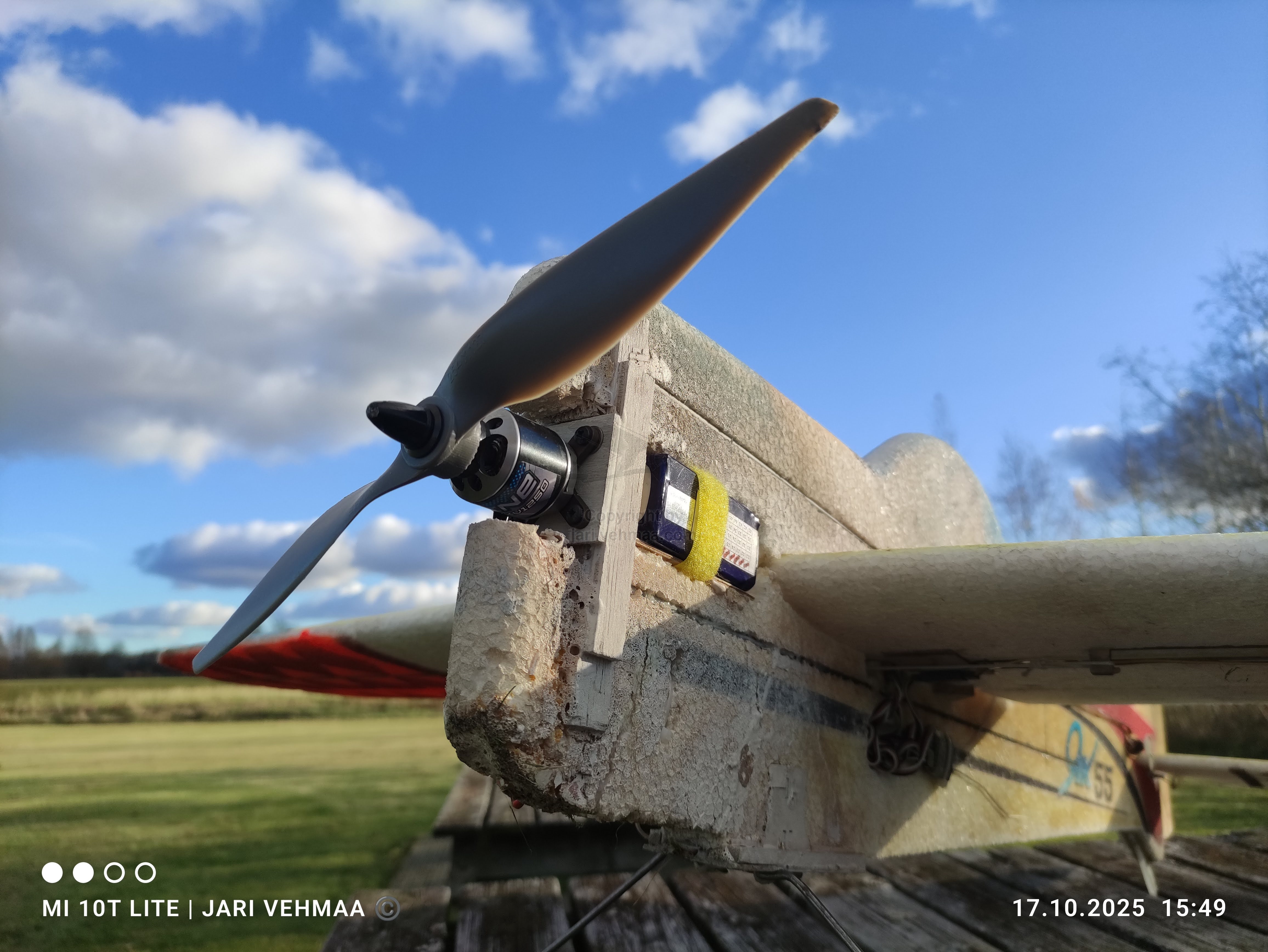 Kone toimi jälleen tylsän luotettavasti. Ainoastaan siiveketrimmiä piti säätää hivenen vasemmalle – muutoin lennettiin trimmit keskellä. Olin jo aiemmin poistanut säätimestä "Oi Susanna" -piipityksen, joten Vesa ei saa tästä enää korvamatoa.