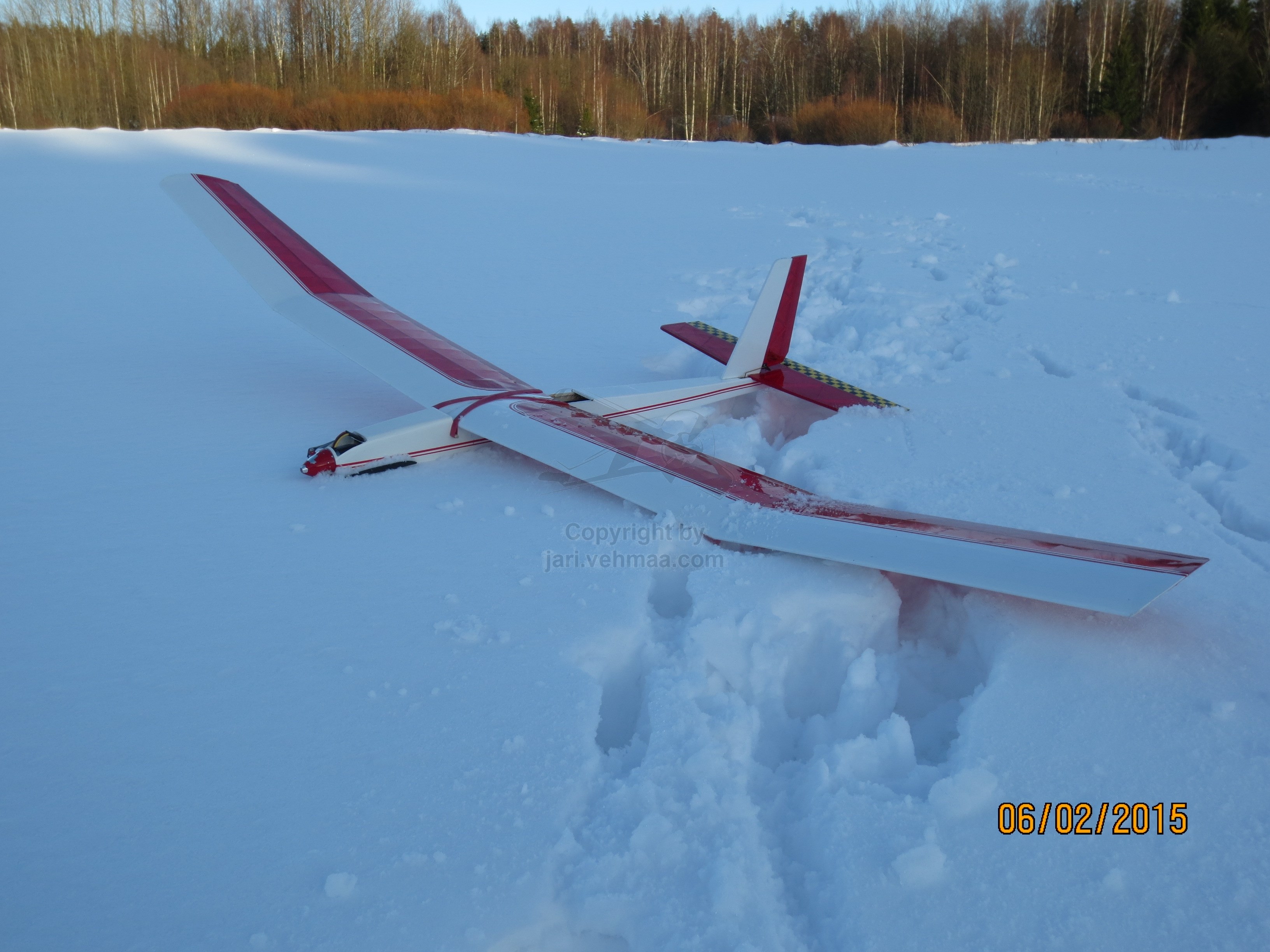 Tämä viikonloppu oli pitkästä aikaa talviviikonloppu, siis sellainen oikea "Made In Finland" -talvi, vuosimallia -70 ja jotain, eikä mikään lälly EU-talvi; missä lumi? Missä pakkanen? Syvällä Matkun sydänmailla, katuvalojen ulottumattomissa, elohopea oli aamusella paennut -17°C hujakoille. Edellisenä iltana olin laittanut lataukseen kolme konetta, joista Onnetar valitsi ns. varman valinnan, siis Wara-Junnun Ja Hotsin. Junnuun oli vaihdetty FrSkyn FASST-yhteensopiva TFR8 SB 8ch 2.4Ghz S.BUS -vastaanotin, joka olikin jo tovin odottanut testausta.