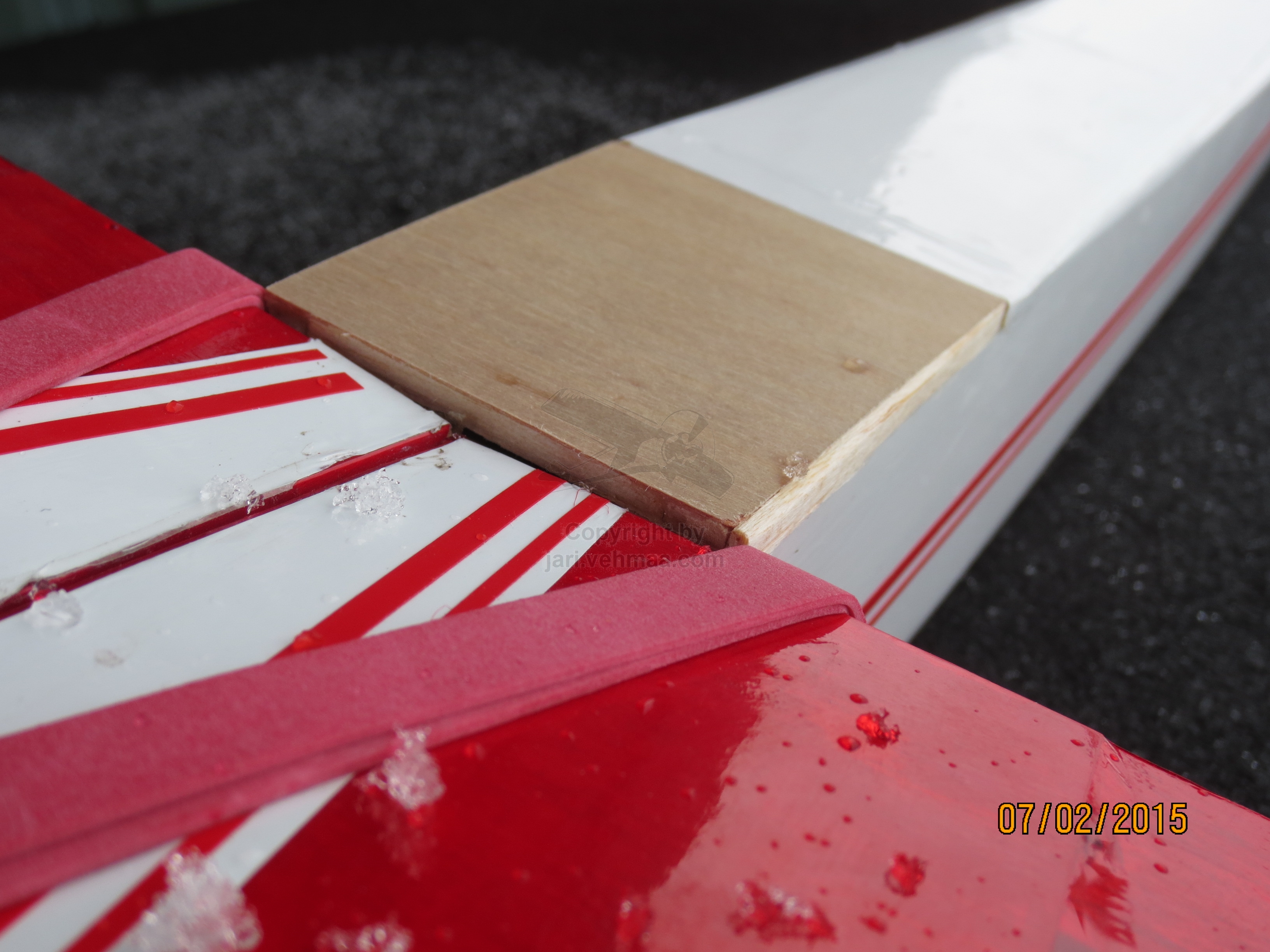 Hello folks, Hobby Kunkun EPP-härpäke, Yak, liimailtiin läjään viikonlopun aikana ja on pakko todeta samaan hengen vetoon, että kuivatelakalla vietetty aika ei juurikaan ollut pois lennätyspäivistä, hyvä niin. Hiilikuitutapin pidike liimattiin läjään Araldit Standardilla, pitäisi pysyä kiinni. Kaputissa yksi pikkuriikkinen vaneriosanen taisi jäädä jonnekin nurmikon kätköihin, mutta sen teki nopeasti uudelleen oikeasta 2 mm lekovanerista. Muut kolhut korjattiin polyuretaaniliimalla, joka on varsin näppärää tavaraa epp-koneiden korjauksiin, vähän meni myös pikaliimaa.