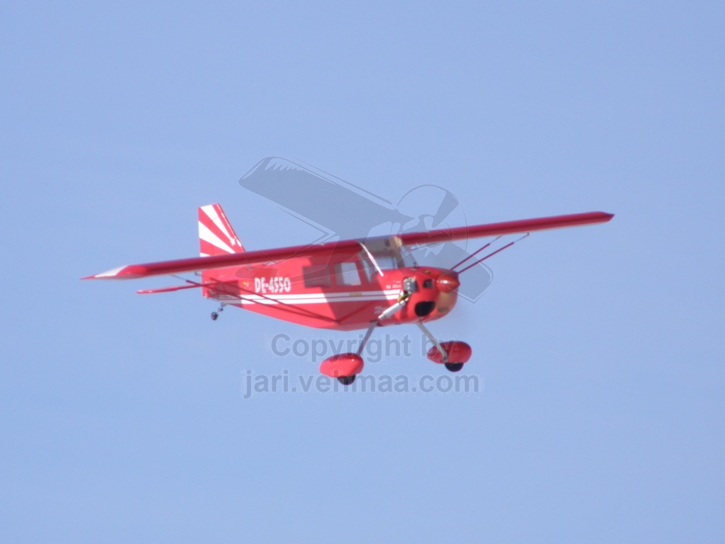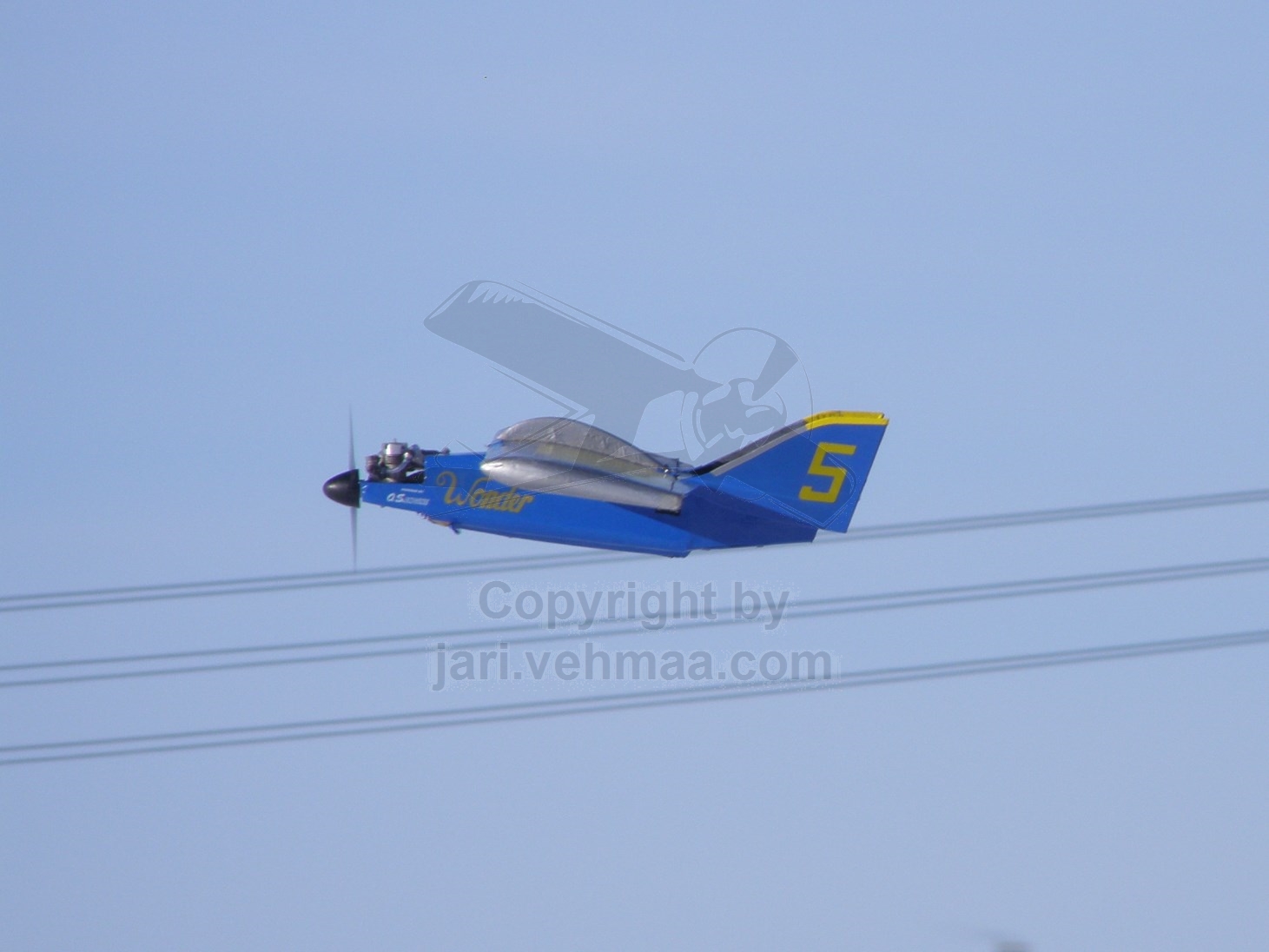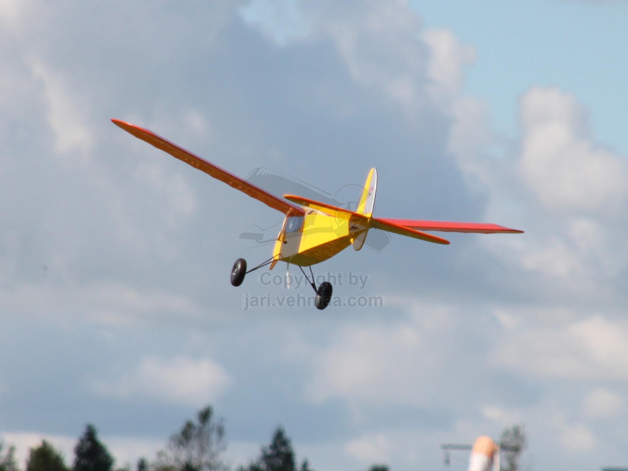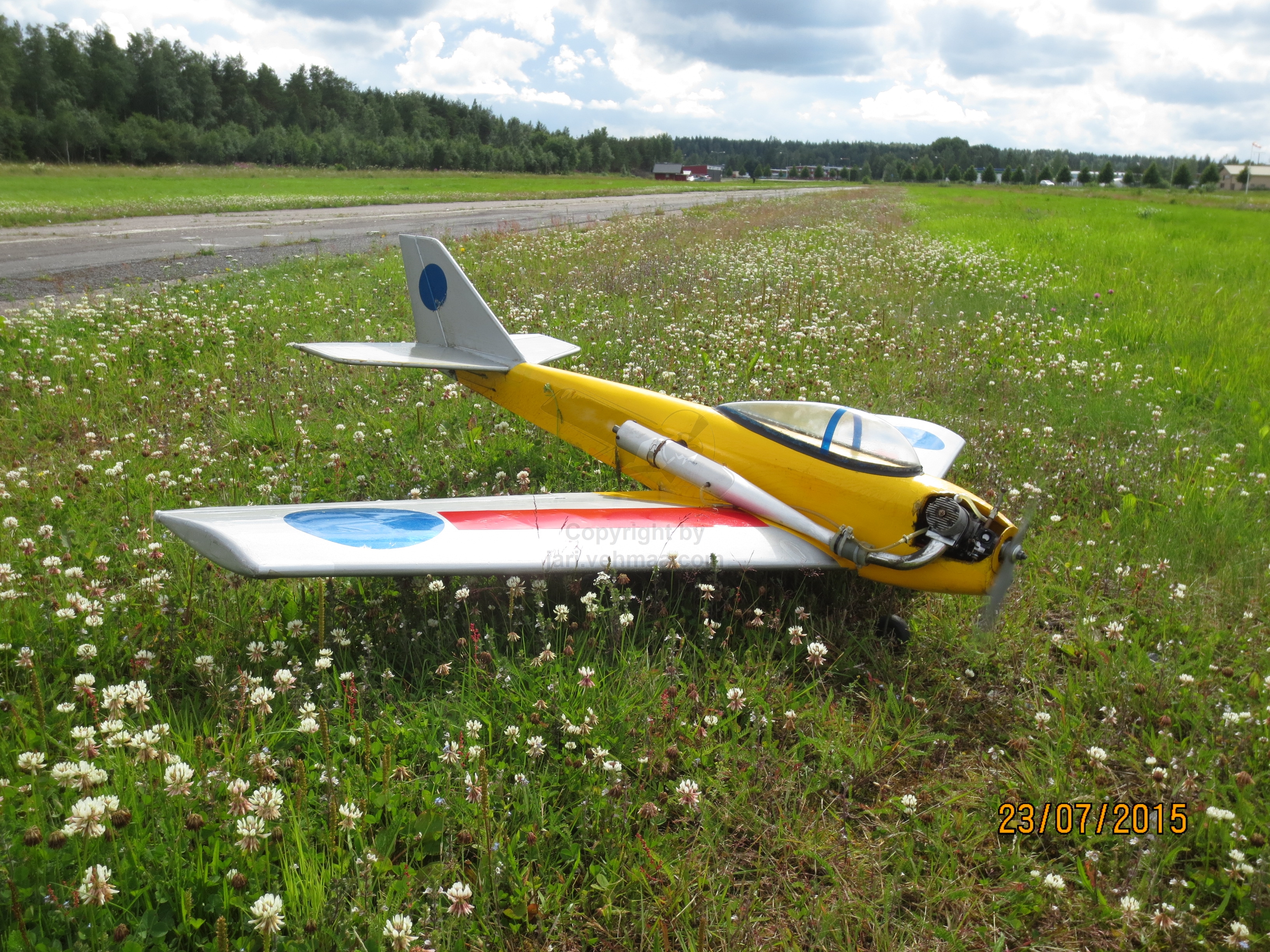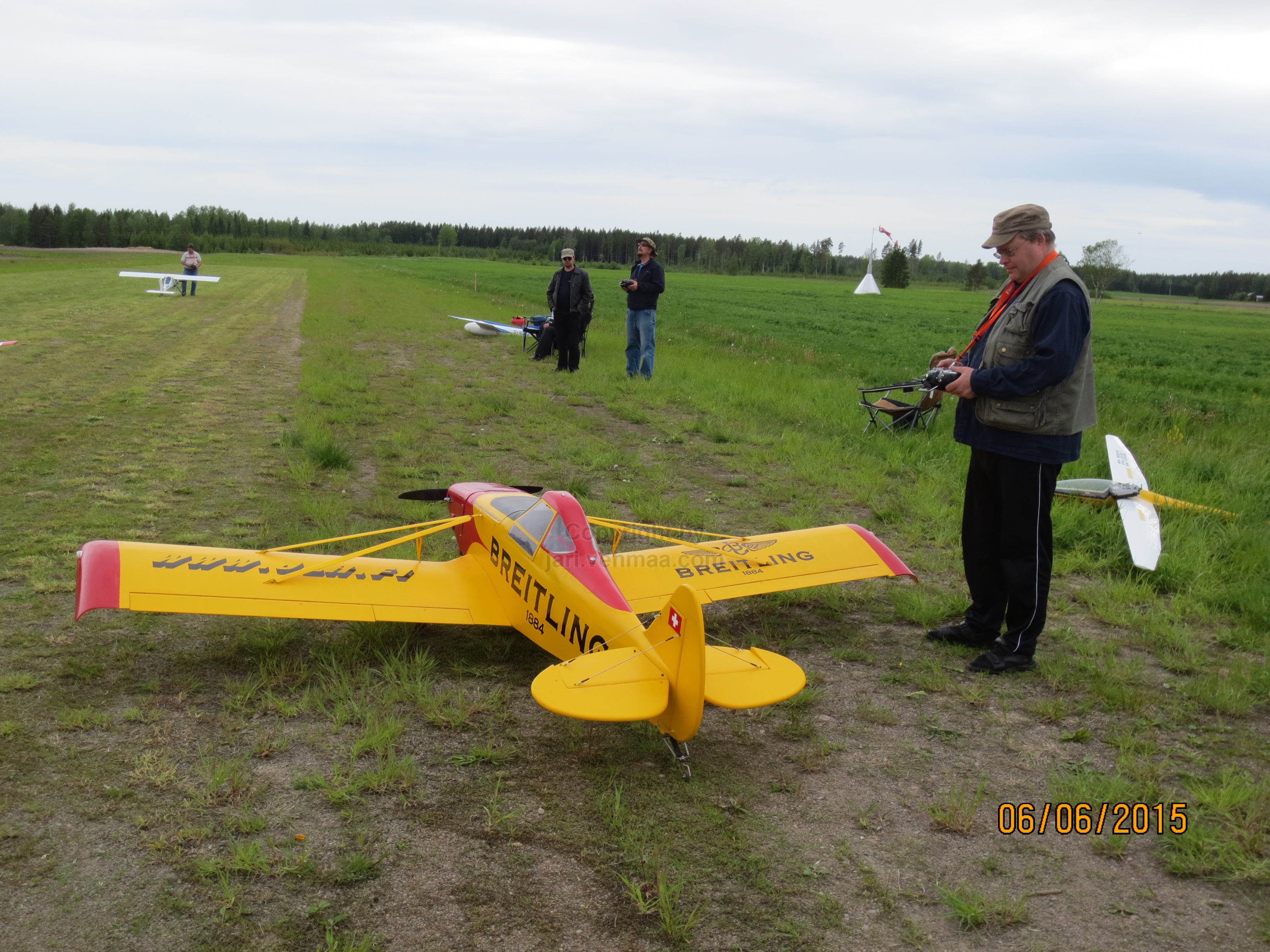 Pöristelin junnulla kuusi noin parin kymmenen minuutin luokkaa olevia lentoja. Junnu toimi ilmassa hyvin, kuinkas muutenkaan. Yksi lasku jäin juuri ja juuri puidun viljapellon puolelle. Viimeisellä lennolla innostuin vetlemään läpilaskuja. Yhdessä ahnehdin liikaa ja Junnun laskutelineet ottivat kiinni ohan heinikkoon ja kone putosi siis ojaan, onneksi ilman mitään vauriota. Junnulla on jo niin paljon lentomaileja takanapäin ja lähes kaiken koneneena se alkaa olla jo likipitäen kuolematon legenda. Petri oli myös paikalla Seagull-Yakin kanssa. Koneessa oli DLE:n 20 ccm besamoottori, jolla se tuntui olevan varsin suorituskykyinen kone.
