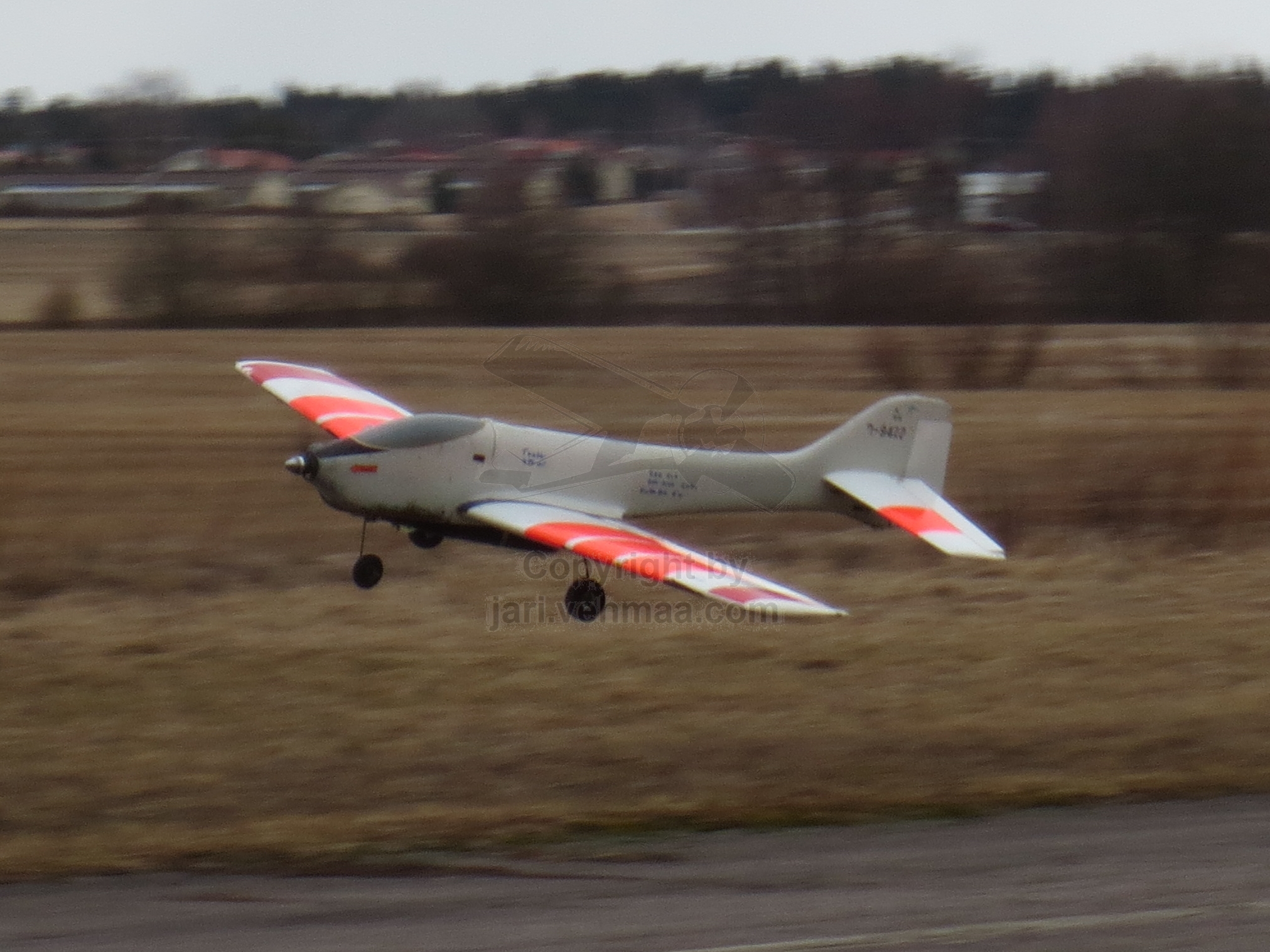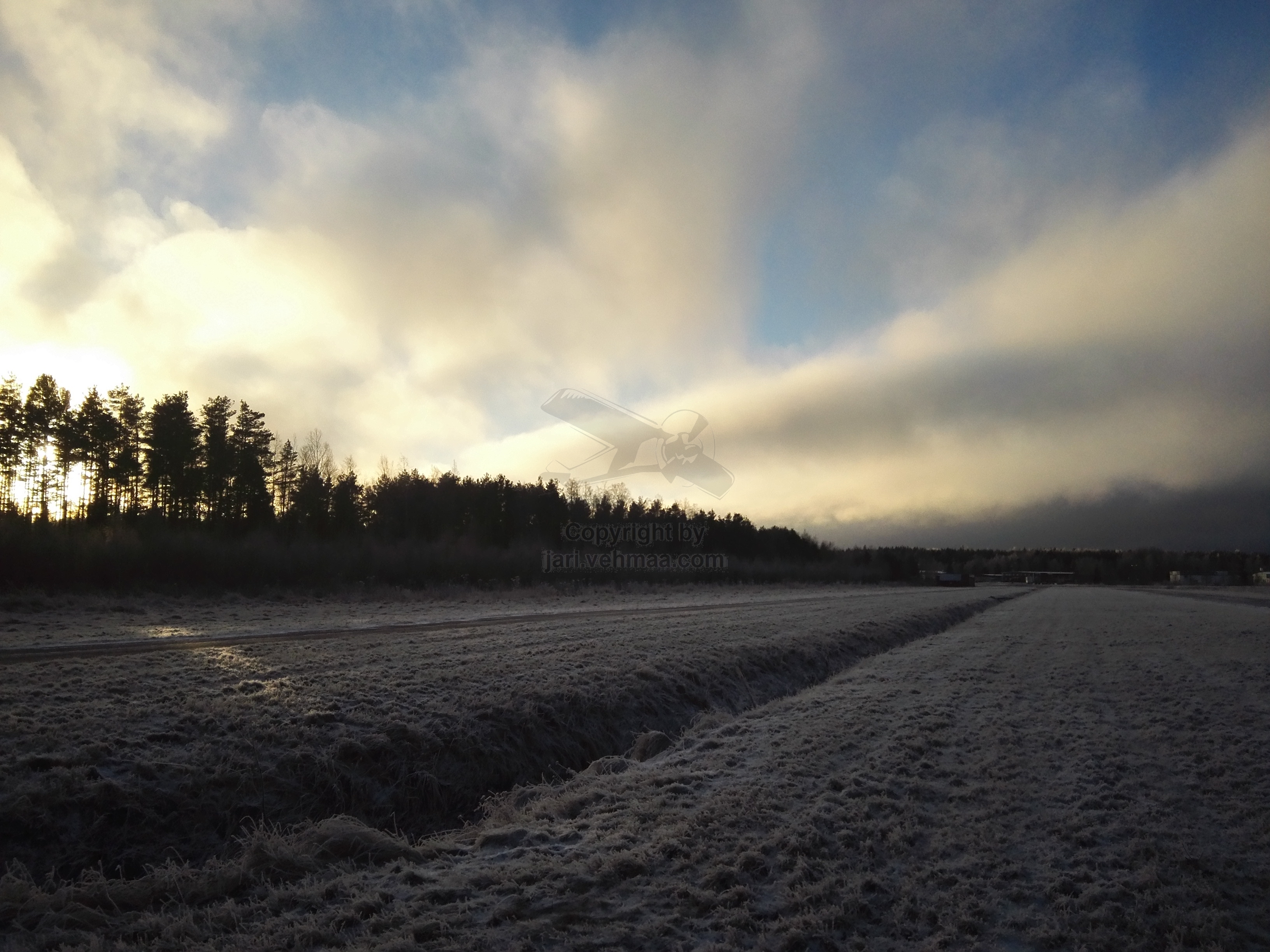 Olin kentällä joskus puoli kymmenen aikaan aamusta. Paljon aikaisemmin ei meinaan kannata tulla, koska tähän aikaan vuodesta päivän valo kortilla, niin kuin kahvi pula-aikana. Junnu lehahti siivilleen varmaan varttia vaille kymmenen. Aika pian lennon aikana terminaalin suunnalta oli jääväämättä pyyhkimässä pienoinen lumikuuro lentokentän, lennättäjä ja Junnun ylitse. Ja niin se peijakas tekikin, mutta kohteli meitä niin hellävaroen, ettei siitä juurikaan ollut haittaa. Junnun vadelmamehulla lennettiin 35'24" mittainen lento, josta viimeinen minuutti liideltiin.