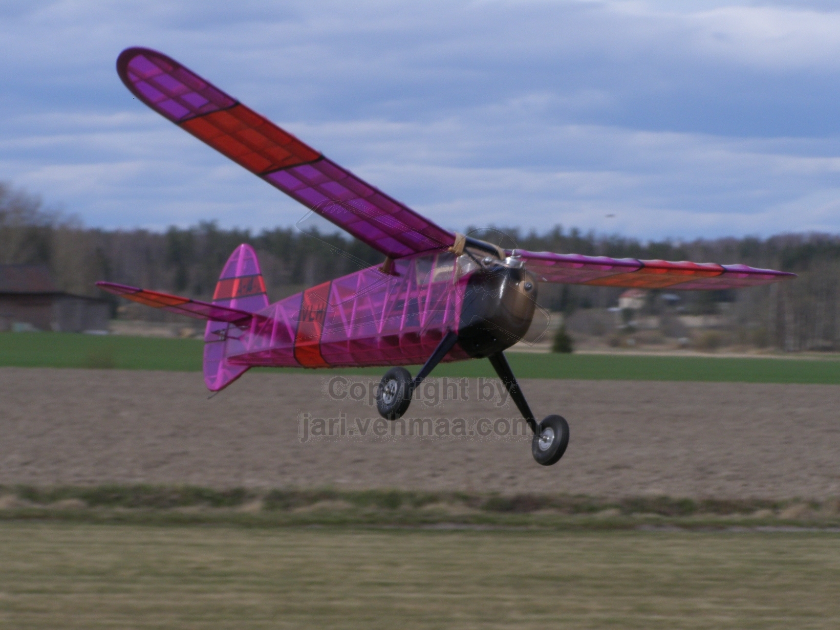 Meikäläisen kauan suunnittelemani lennokkiloma näytti uhkaavasti kadota tuule tuiverrukseen. Jospa edes tänään pääsisi Wara-Junnua ulkoiluttamaan kotipellolle. Junnu oli pian täydessä lentovarustuksessa ja moottori pörähti helponoloisesti käyntiin. Sitten vaan muutama askel ja oltiin jo pellon reunassa.