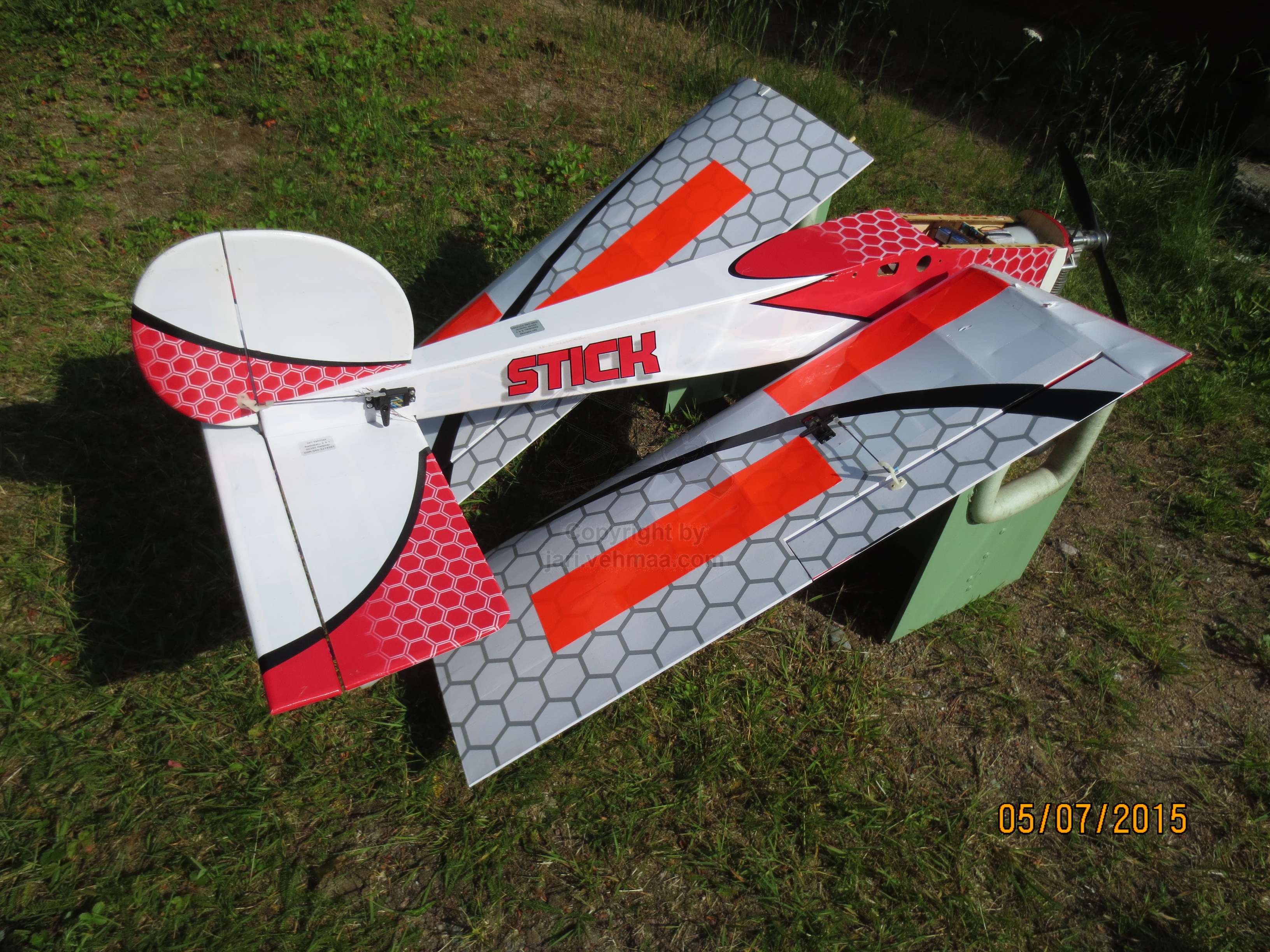 Bensa-Tikulle oli päässyt kertymään myös hieman taukoa ja niinpä RCG 15 ccm myllyä sai mätkiä käyntiin tavallista enemmän. Ilma oli niin tyyni, että oli ihan sama, mihin suuntaan nousukiidon otti. Lensin verrytellessä Tikulla 9'54" mittaisen lennon. Nätin laskun päätteeksi kone ajautui nurmikon puolelle, missä se myös itsekseen sammui.