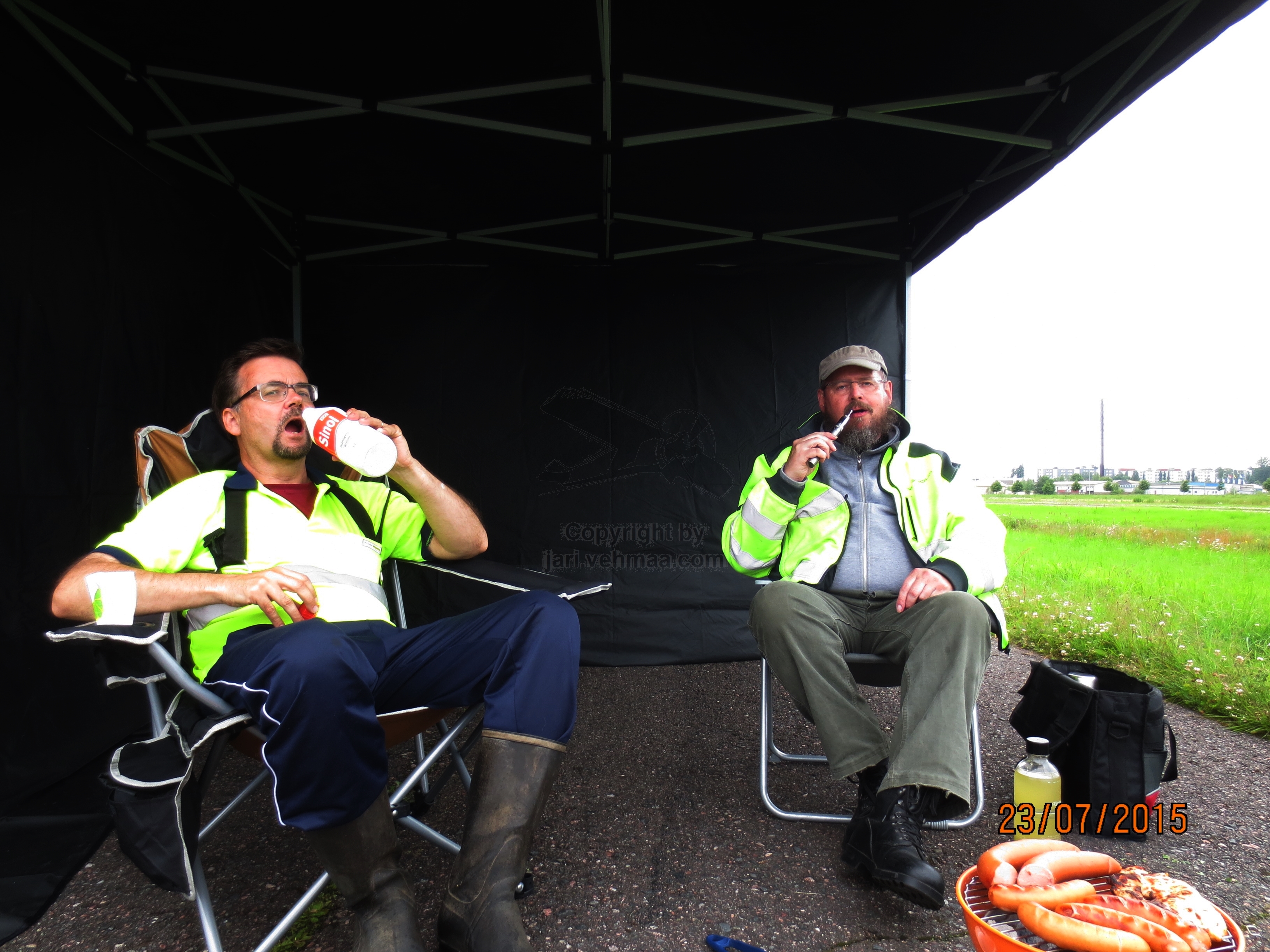 Lennätyksen välissä nautittiin, sanoisinko jo pienoiseksi perinteeksi muodostuneen "Lennokkimiehen Jouluaterian" eli kansanomaisesti artikuloituna grillattiin makkarat. Jouluaterian hohtoa himmensi sinapin unohtuminen, mutta onneksi oli sentään höyryävän kuumaa kahvia ja teetä. Old timer päristelyn tiimellyksessä meni lyhyen joulukuisen "talvipäivän" koko valoisa aika.