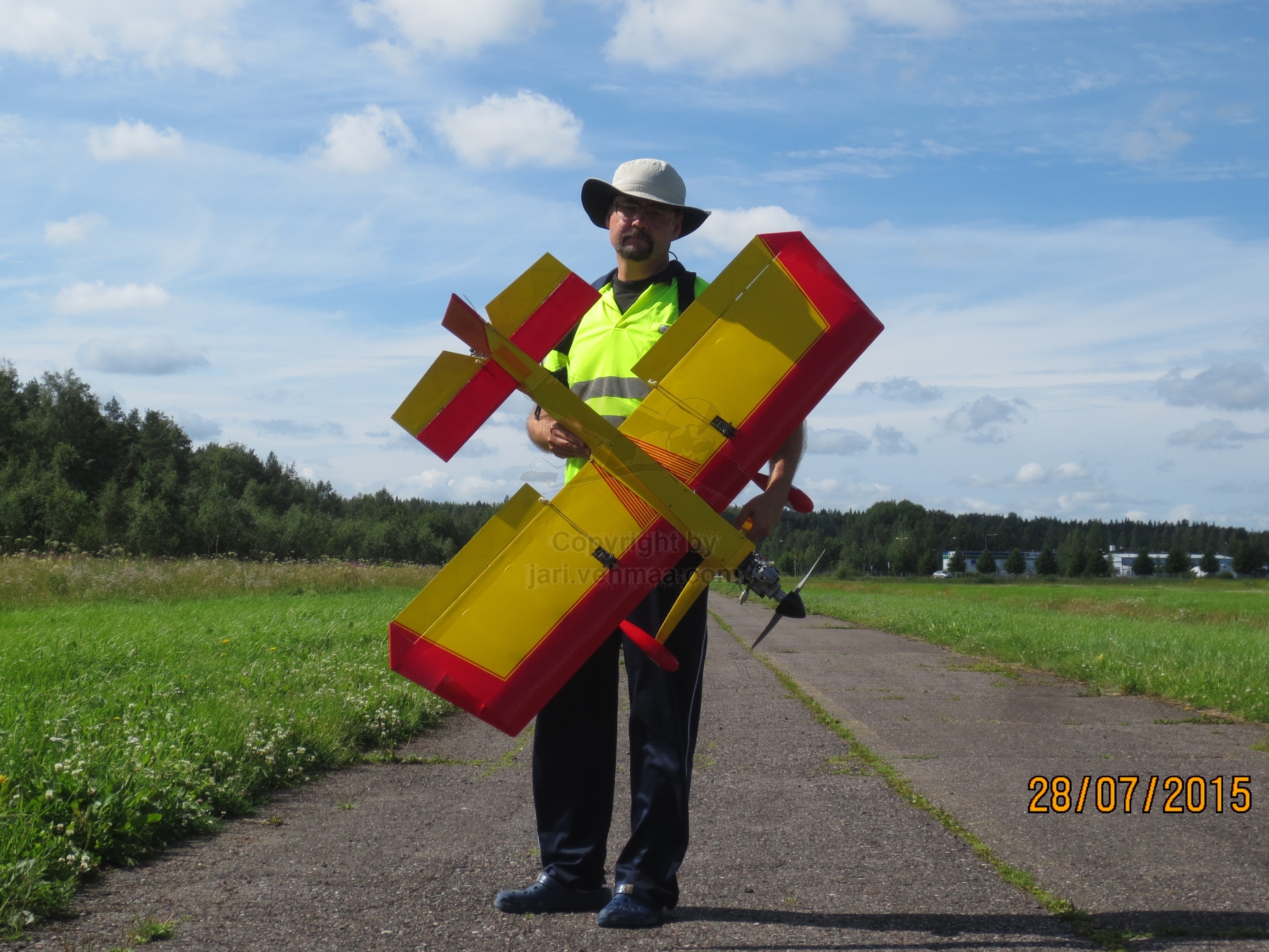 Mutta asiaan. Nyt lauantaina oli tosi kaunis, tyyni ja aurinkoinen sää. Autoon oli tungettu Bensa-Tikku ja uusi Junnu. Edellisistä lennätyksistä olikin ehtinyt kulua jo kuukausi, täällä välin on itse lennelty Etelä-Euroopassa. Sormet kyllä jo syyhysivät päästä kiinni radion tikkuihin.