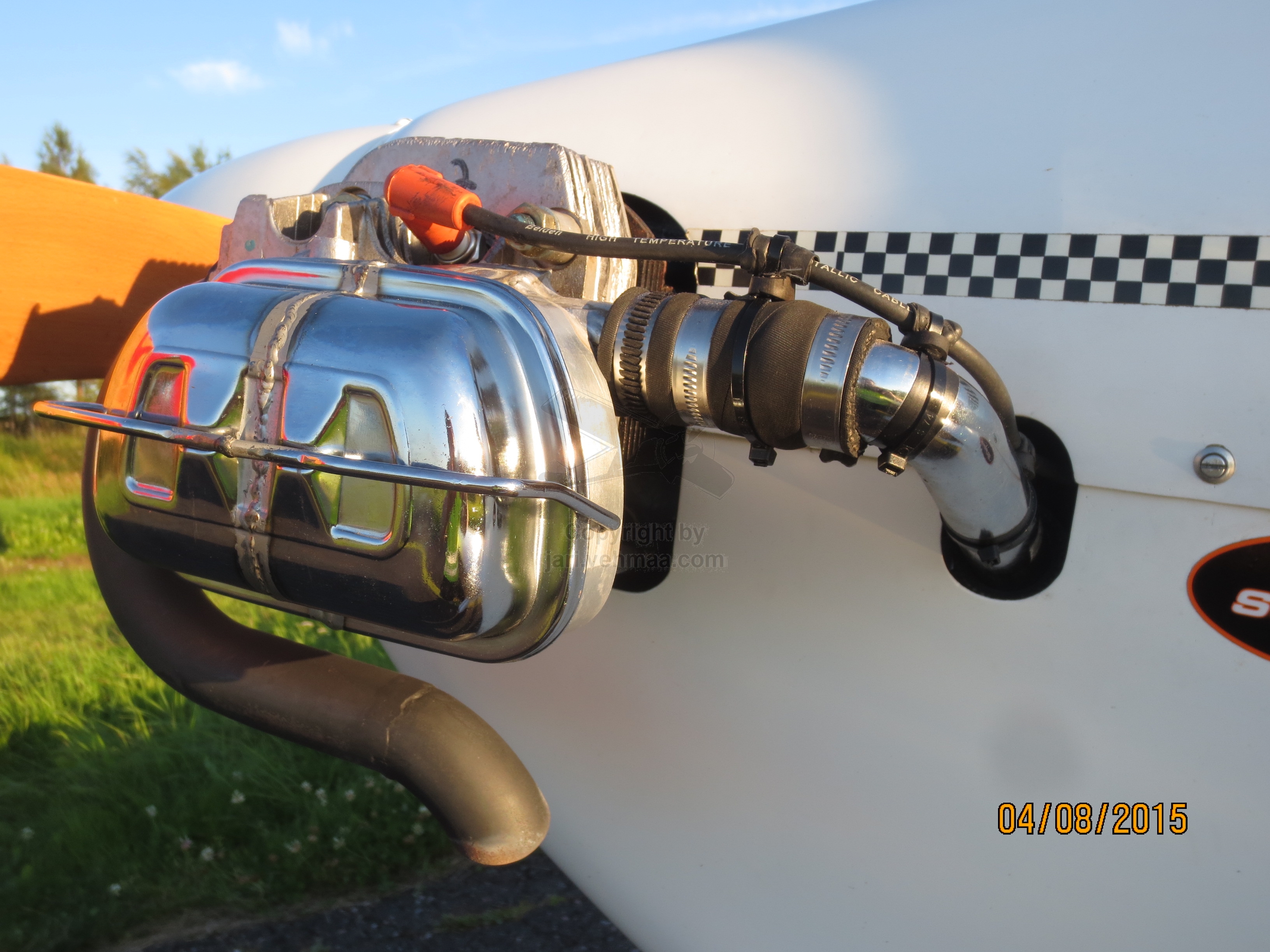 Junnun jälkeen aloin valmistella Sportsteria koelennolle. Olin jo eilen käyttänyt ja viritellyt moottoria. Aika pian tuli selväksi, ettei konetta tänään koelennetä. Moottoripukki tuntui heiluvan aika paljon, joten se siitä sitten. Myöhemmin Hesan verstaalla konetta purkaessani kirosin runsaalla pikaliimalla lukittuja tuumamittaisia pultteja, jotka oli aika sujuvasti nylpätty avaamiskelvottomiksi paskoilla ja lipsuvilla työkaluilla. Moottoripukki on kuitenkin irrotettava ja tuliseinän taakse asennettava M4-lyöntimutterit.
