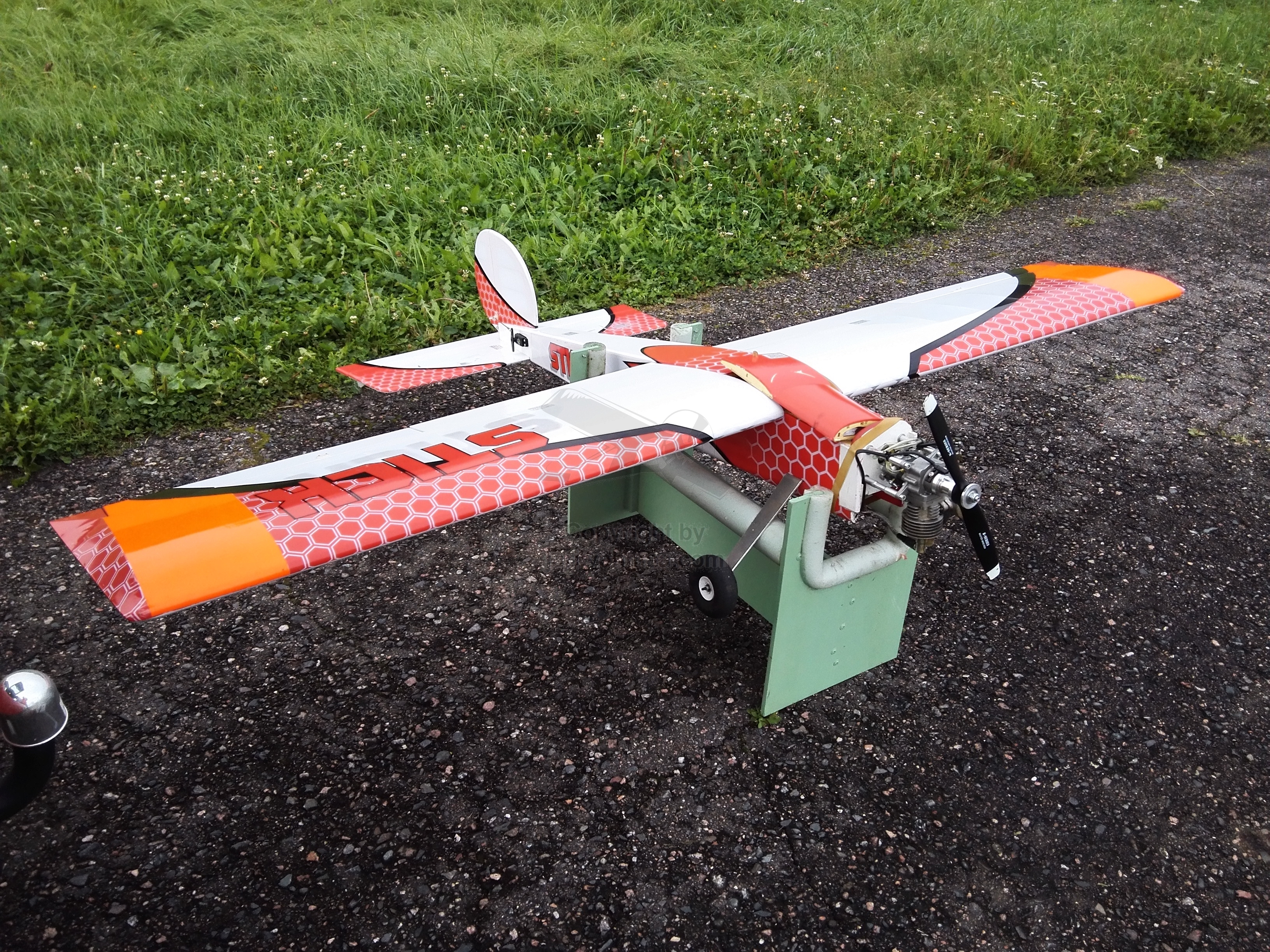 Konetta myydään hienolta kalskahtavalla nimikkeellä; "Giant Stick Sport 90 Aerobatic Sport Plane". Ihan kiva kone, ei minun mielestä kuitenkaan mikään "Aerobatic" ja RCGF 15 ccm moottorillakin "Sport" tuntuu jo hieman harhaan johtavalta mainonnalta. Hoppulan moottorisuositukset ovat kuitenkin "90 Two-stroke/120 Four-stroke engine/ 15cc gasoline", joten oma setup on ihan linjassa suositusten kanssa.