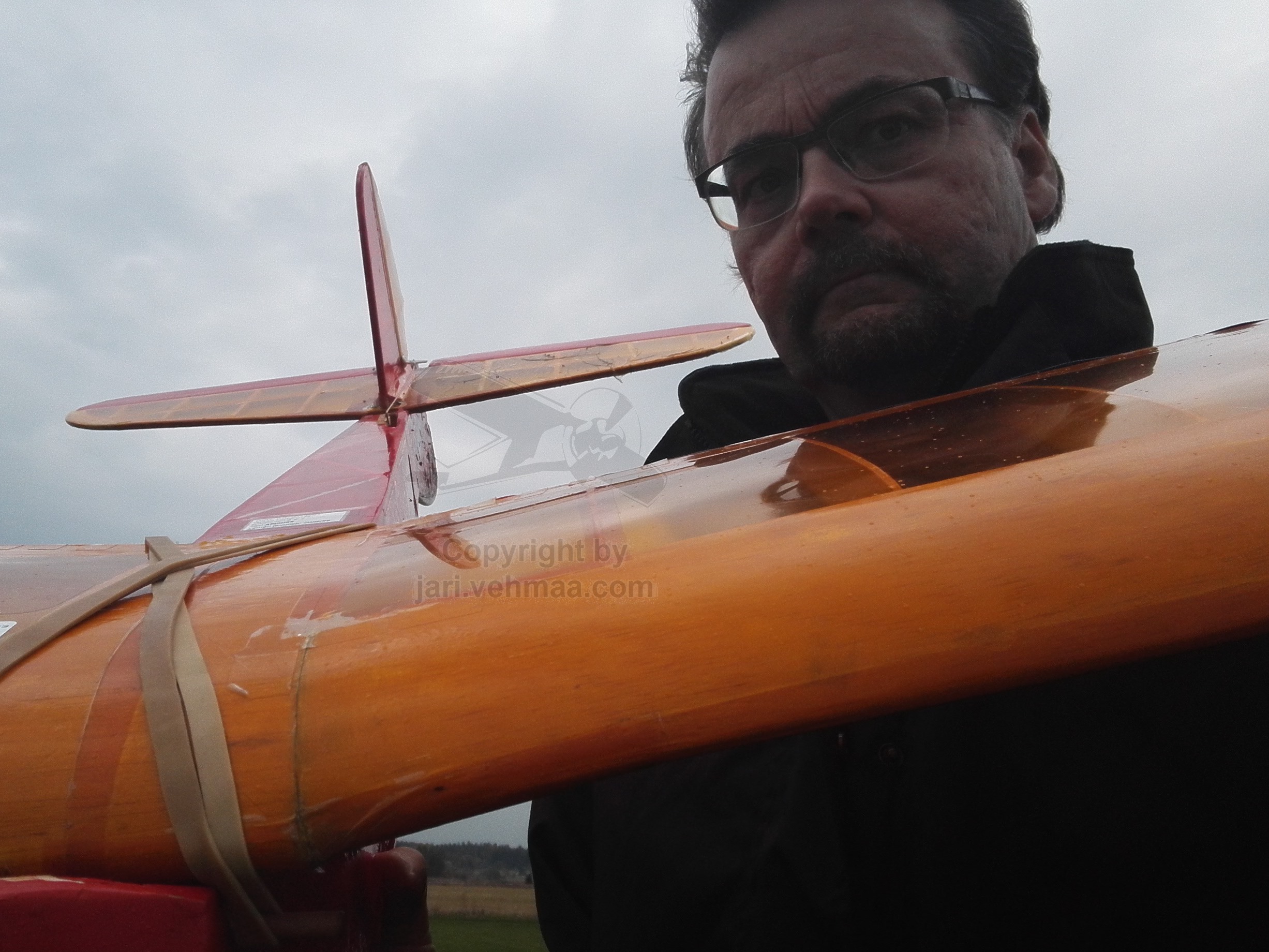Lensin Junnulla kaiken kaikkiaan viisi lentoa, aikojen ollessa varttitunnista puoleen tuntiin. Olisin kyllä lentänyt kuudennenkin lennon, mutta Ossi meni sammumaan nousussa ja laskeutuminen kyntöpellolle johti vääjäämättä koneen kellahtamisen katolleen, jonka seurauksen sivuperäsin irtosi liimauksistaan. Nyt sen irtoamista ihmetellessä, on ollut iso tuuri, ettei se ole aikaisemmin pettänyt, sen verran pienet liimapinnat siinä näytti olevan ja balsatikut jo pahasti öljyttyneet. Lämpötila oli plussan puolella, mutta suuri ilman kosteus piti lämpötila-aistimuksen hyvin kylmänä. Näissä olosuhteissa Junnulle tuli kokonaislentoaikaa karvan yli kaksi tuntia
