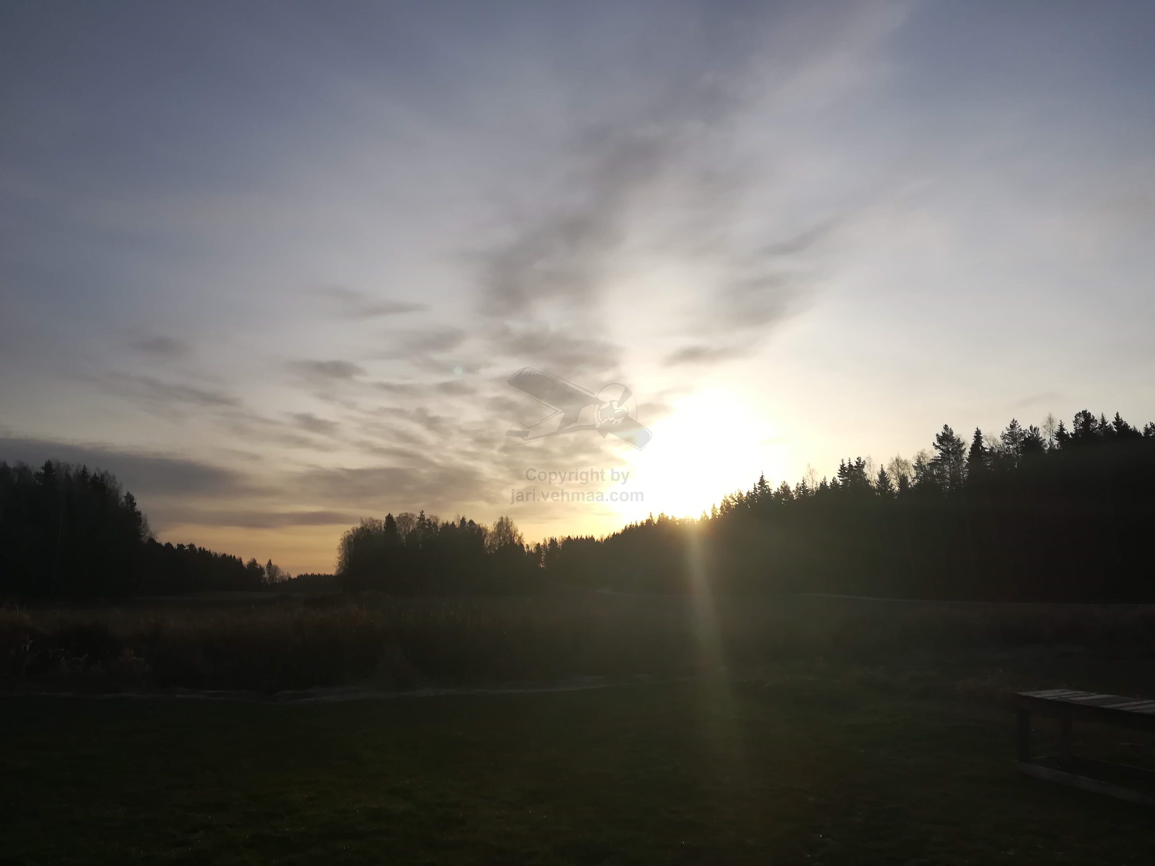 Harrastepäivitykset jatkuvat, nyt puolestaan kohtalaisen tuuliselta ja talvea enteilevältä Ämmässuon kentältä, jonne piipahdin töiden jälkeen lennättämään. Päivä oli kaunis, mutta aika kylmä ja tuulinen, matkalla auton lämpömittari näytti +10°C. Pian pitänee vaihtaa talvimoodiin eli pipoon, pilkkihaalariin, raappahousuihin, villasukkiin sekä lähetinhuppuun, niin taas kelpaa pöristellä. Reipas tuuli vähän arvelutti, mutta ei siinä auttanut muu, kuin tuulta päin,
