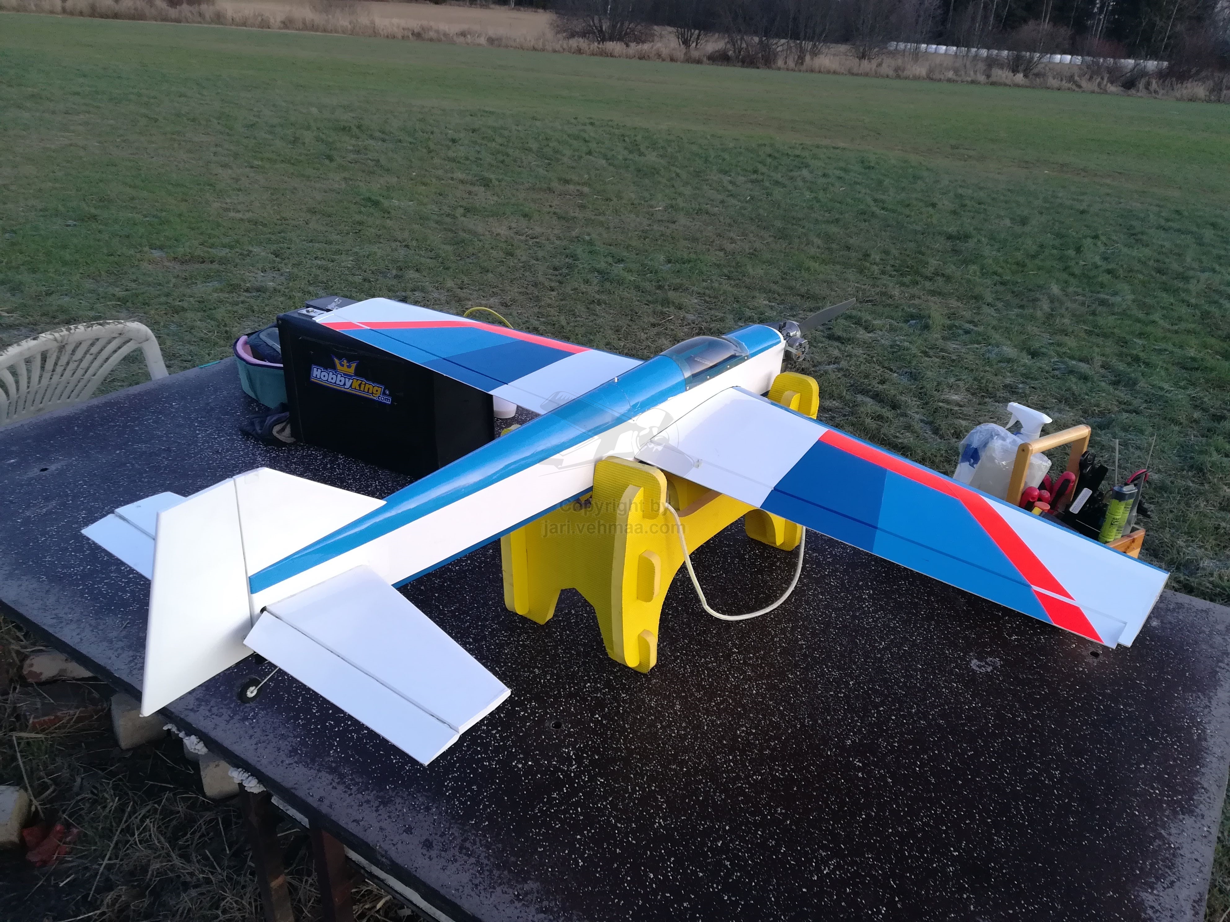 Kentällä oli myös lennättämässä Juha ison Edgensä kanssa, jonka keulilla räyhäsi 130 ccm DLE; aikamoinen pata sanoisin. Summattuna vielä, että takanapäin oli todella hieno ja nautinnollinen lennätyspäivä.