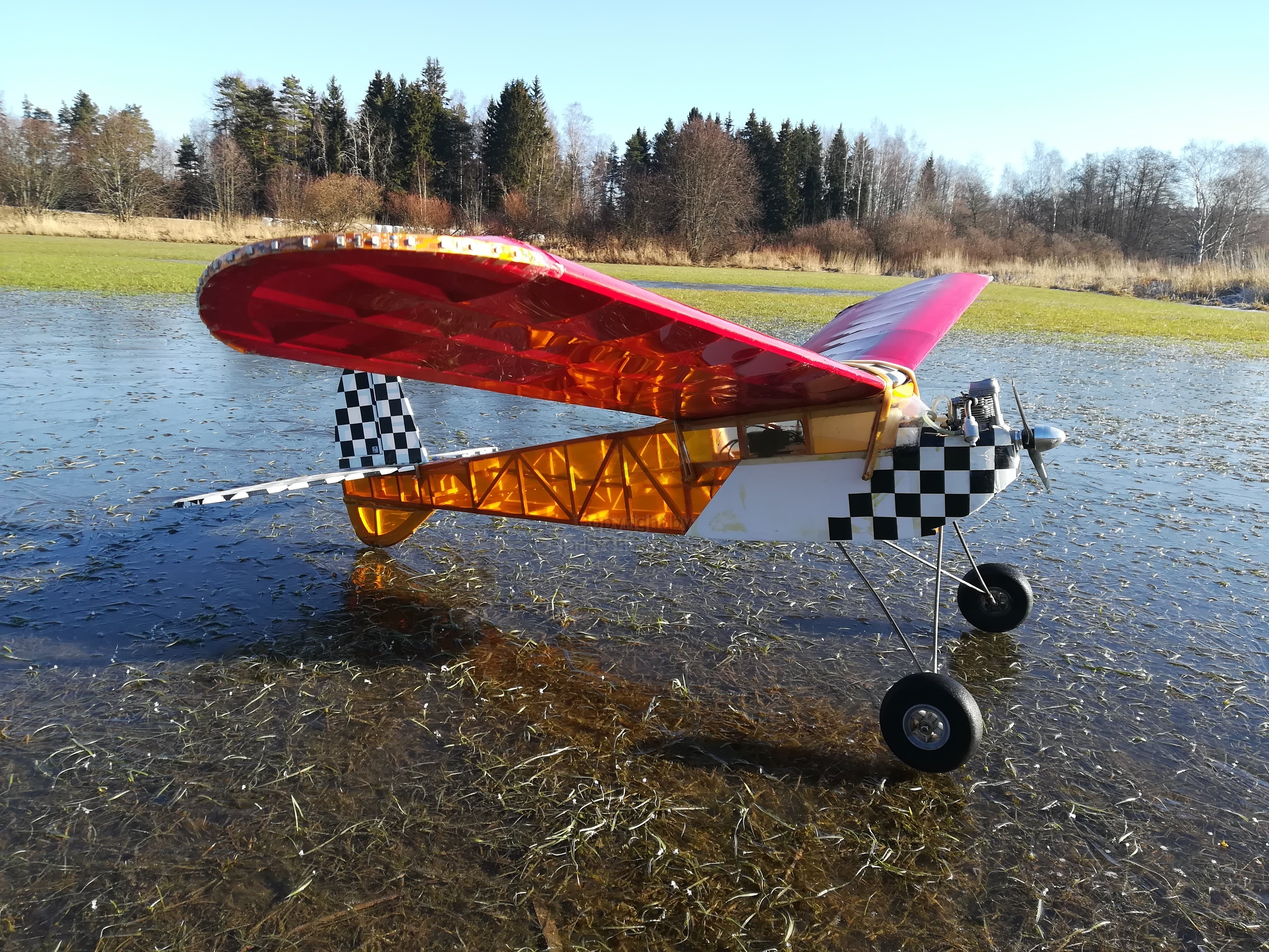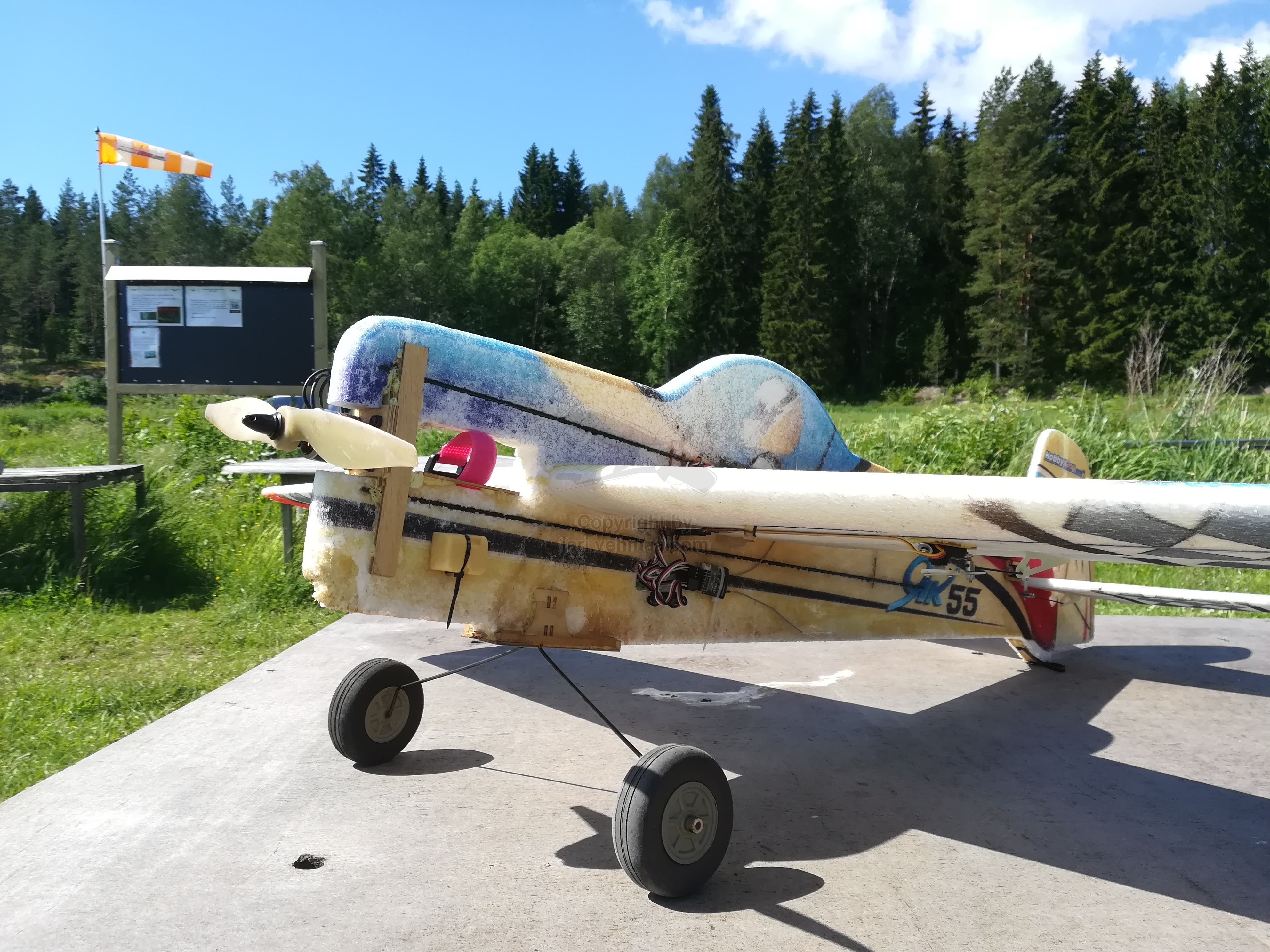 Viikonlopun aikana tulin sopineeksi Pekan kanssa lennätykset Forssan lentokentällä. Edellisestä pöristelysessiosta on päässyt kulumaan liian pitkä aika. Olin ottanut Hesasta mukaan perus- ja peräkorjatun Ykkös-Junnun, mutta lähdön huumassa otin väärän lähettimen matkaan. Puolet takalaatikon kamoista oli näin ollen ihan turhaan mukana, mutta minkäs sille voit.