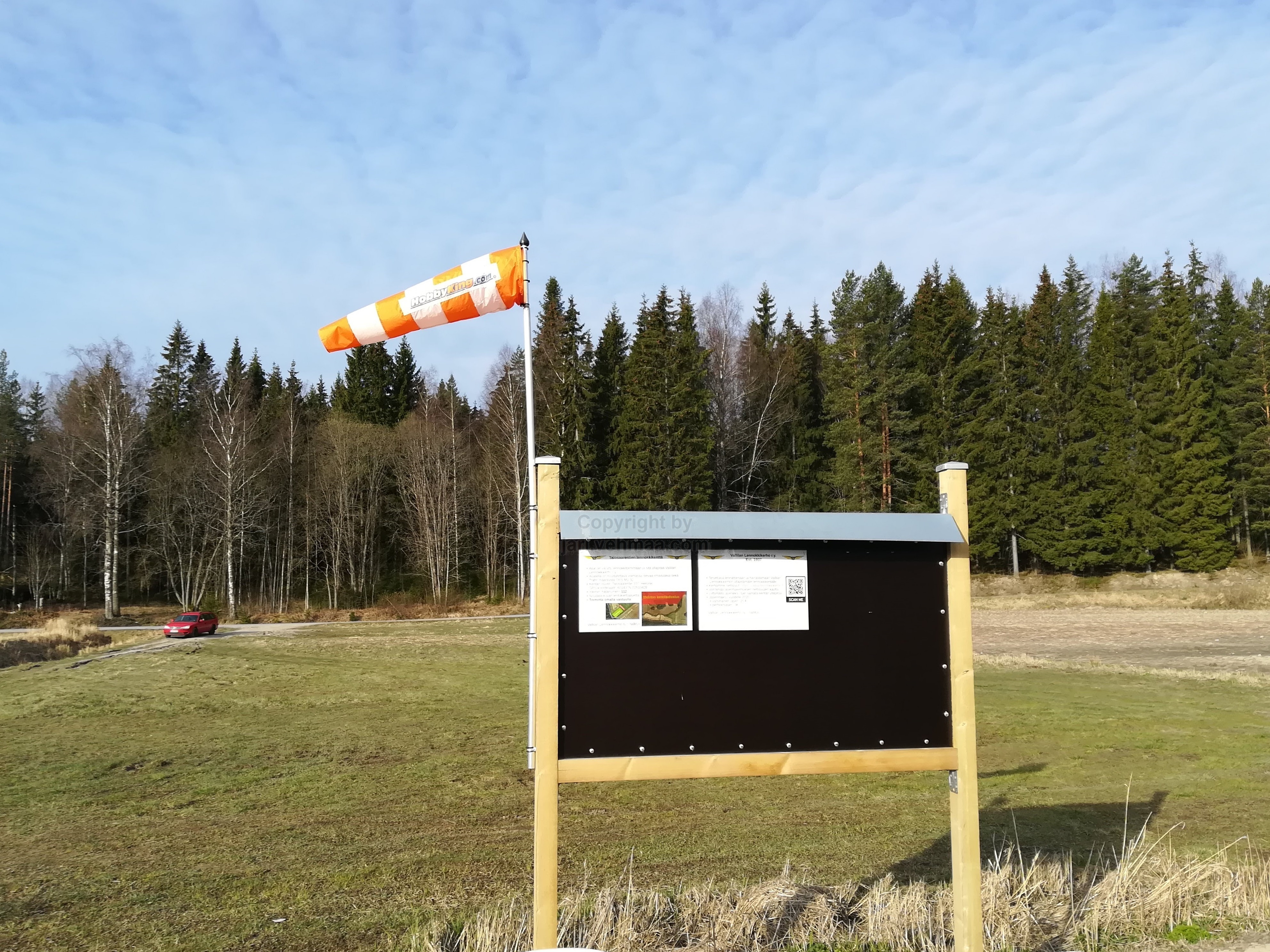 Jokusen kuukauden tyhjänä seissyt ilmoitustaulu sai tänään ensimmäiset pysyväistiedotteet, kun kävin yhdessä yhdistyksen puheenjohtajan kanssa niittaamassa pari A3:t vesivaneriin. Parin sateettoman päivän jälkeen kenttä ja parkkipaikka olivat ihan kohtalaisessa kunnossa. Taululla on nyt perustietoa Vallilan lennokkikerhosta sekä kentän lentokieltoalueista.