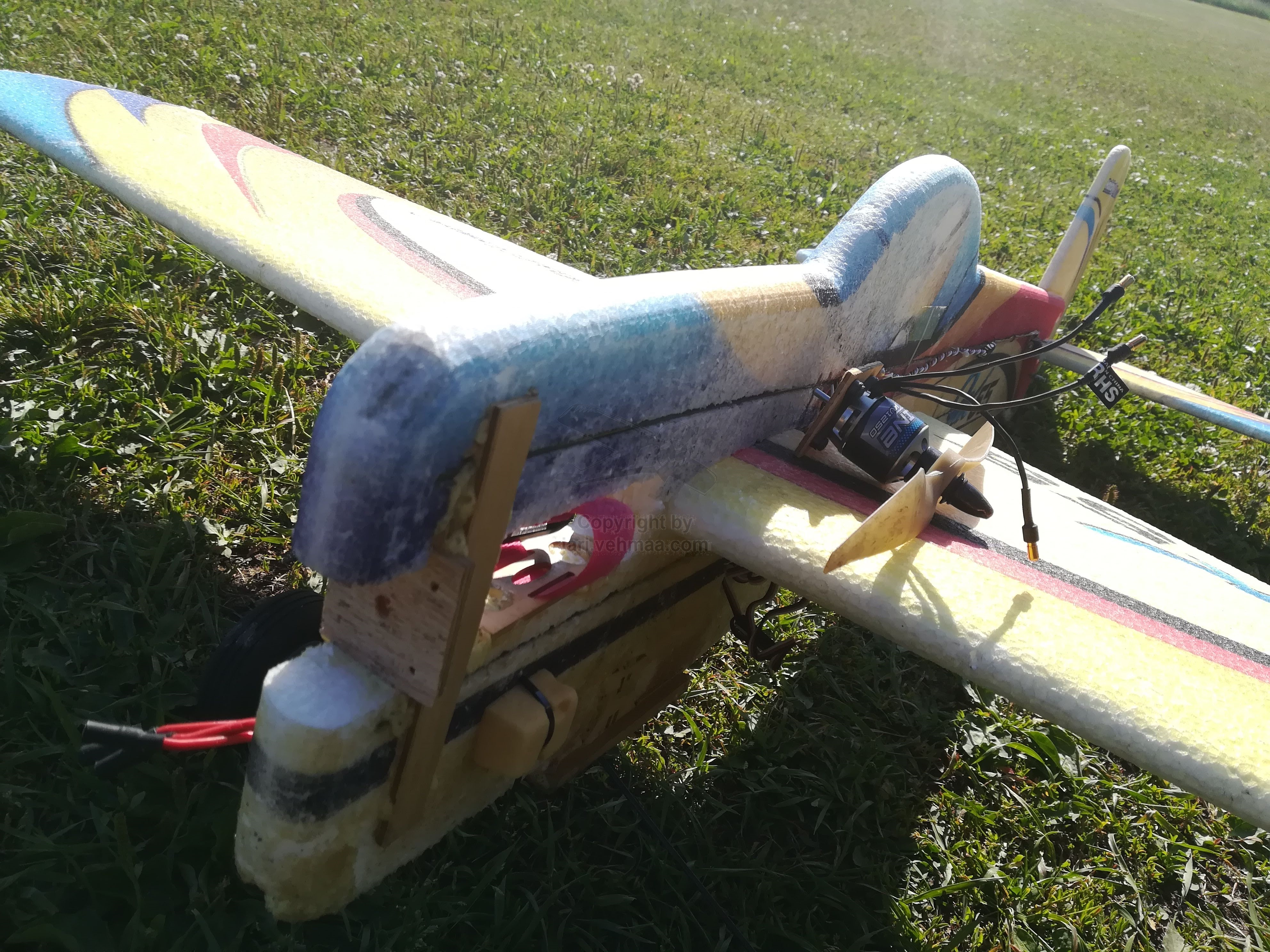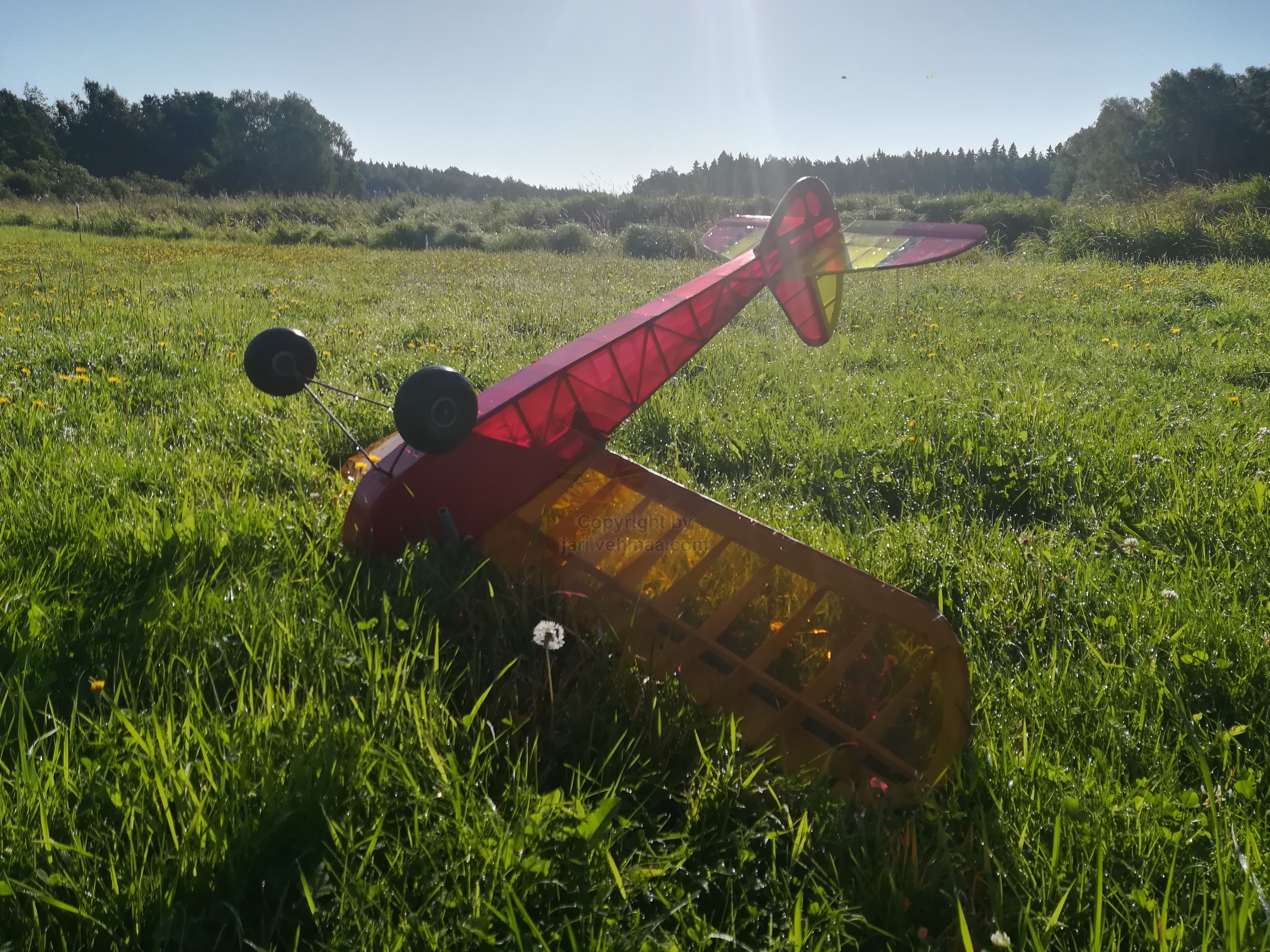 Nonniin, nyt moottori alkoi jo pysymään käynnissä koko lentoajan. Lensin koneella kolme normimittaista lentoa (6+5+5 min), joista kuusi minuuttia on jo ihan liian pitkä lentoaika ja moottori ehtii sammua tällä kertaa polttoaineen luonnolliseen loppumiseen.