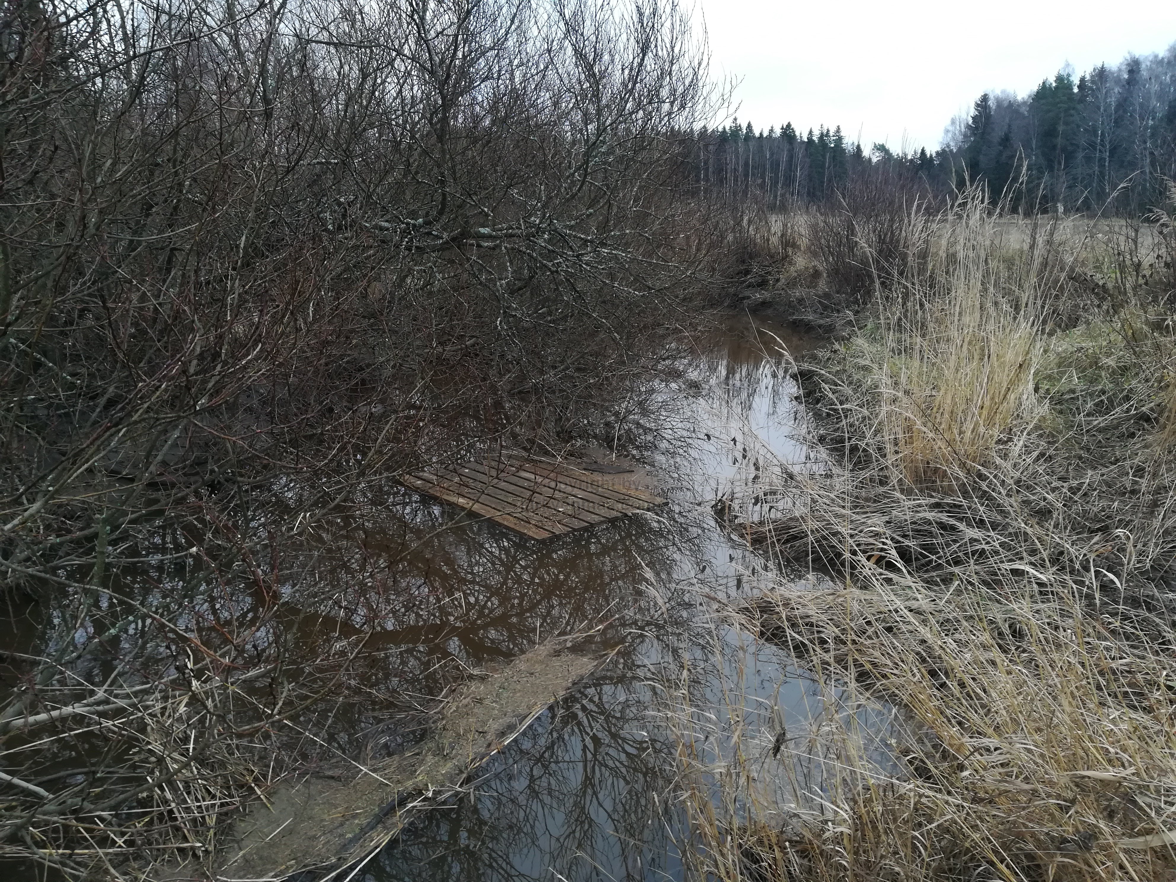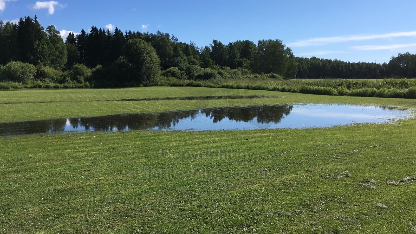 Muutamat kuvat vetiseltä ja tulvien koettelemalta lennokkikentältä. Samalla kerralla niittasin ilmoitustaululle liitovarjoilun ja traktorilla ajelun kieltävät plakaatit. Tulvavesi oli vienut pikkusillan jokeen asti, missä se kellui saavauttamattomissA. Olin sen verran kevyesti varaustaunut, ettei tällä kertaa ollut mahdollisuuksia onkia siltaa kuivalle maalle. Mika raporoi myöhemmin onkineensa sillan jorpakosta ja raahanneensa sen kentälle.