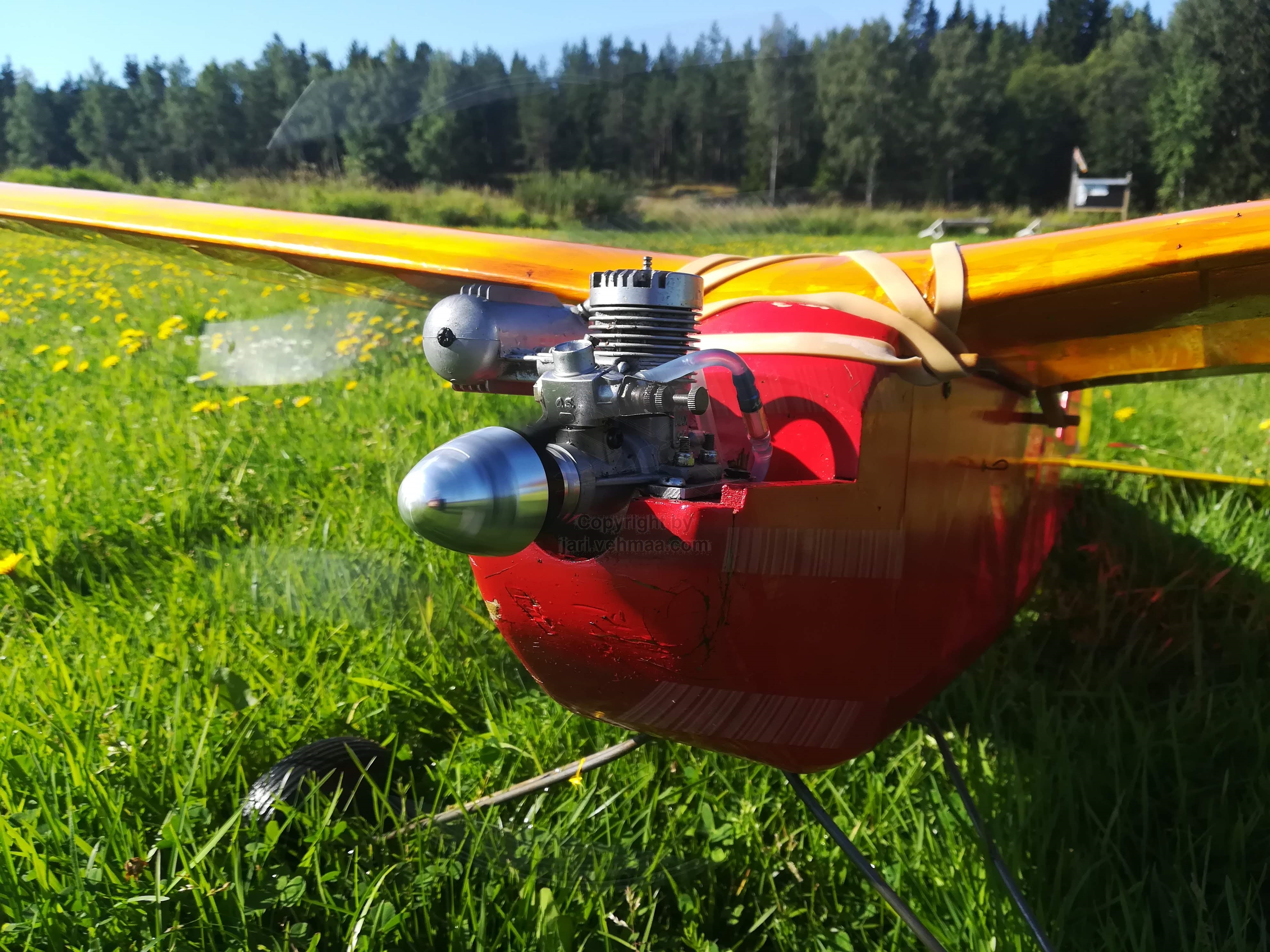 Onneksi Junnut ei ihan heti lopu kesken, Matkun hangaarissa on vielä käytettynä ostettu, jonkun engelsmannin rakentama yksilö, jonka keulilla on myös OS 30 FS-nelitahtimoottori. Tällä setillä lähdettiin liikenteeseen. Olin varmuuden vuoksi käyttänyt moottoria jo edellisenä iltana, joten se puoli oli tsekattu.