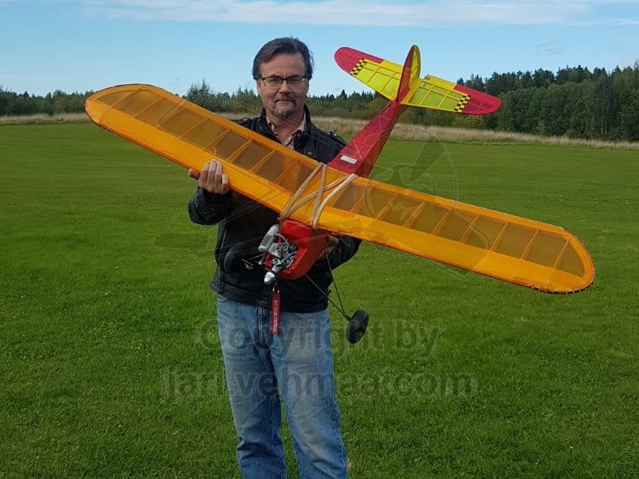 Raahasin koneen siivenkiinnityyskumilenkeistä roikottaen kentän päätyyn. Tehtyäni viimeisen tsekin, että kaikki ohjaimet toimivat niin kuin pitääkin, avasin kaasun ja Junnu lähti nousukiitoon ollen hetken päästä jo ilmassa. Enpä nyt muista, koska viimeksi ajoin old timeria. Sen kyllä huomasi, sillä nousussa oli pienoista hapuilua, mutta ihan turvallisesti Junnu kohosi siivilleen. Pienen trimmailun jälkeen lento alkoi olla taas sitä old timer-lentoa, jolla on lähes terveystuotteen kaltaiset vaikutuksen harrastajan hyvinvointiin. Ensimmäinen lento loppui aikaan 20’30”, mikä oli hyvä pelinavaus.